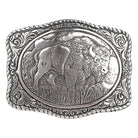Boucle de ceinture western au caractère puissant et authentique, mettant en scène un bison (buffalo) en relief dans un décor de prairie. Sa finition argent et sa bordure corde soulignent l’inspiration western traditionnelle, offrant un rendu robuste et intemporel. Une pièce emblématique signée M&F Western Products, idéale pour les amateurs de nature, de ranch et d’héritage cowboy.