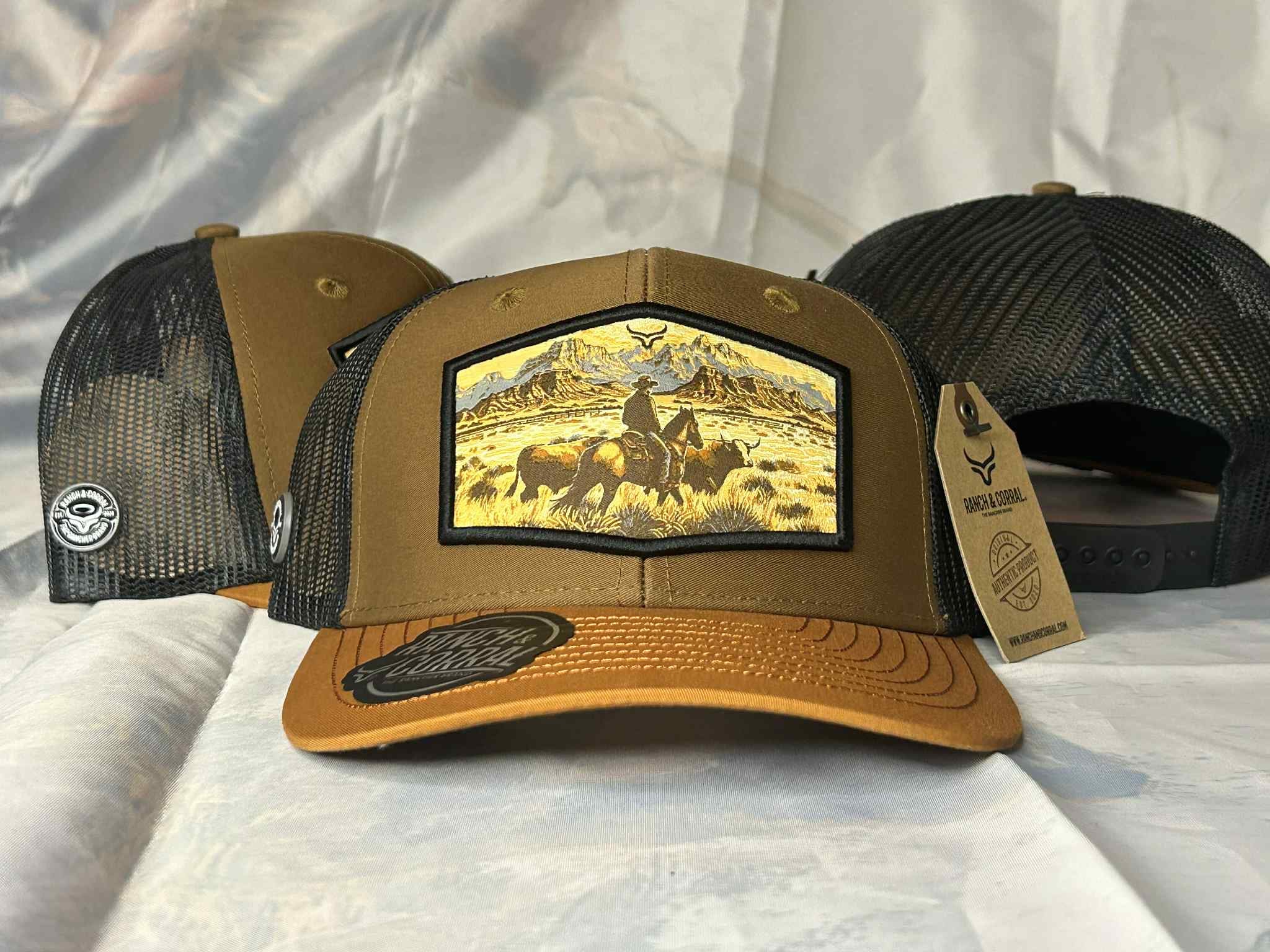 Casquette Cow Tag – Brun Coyote & Mesh Noir – Patch de Cuir