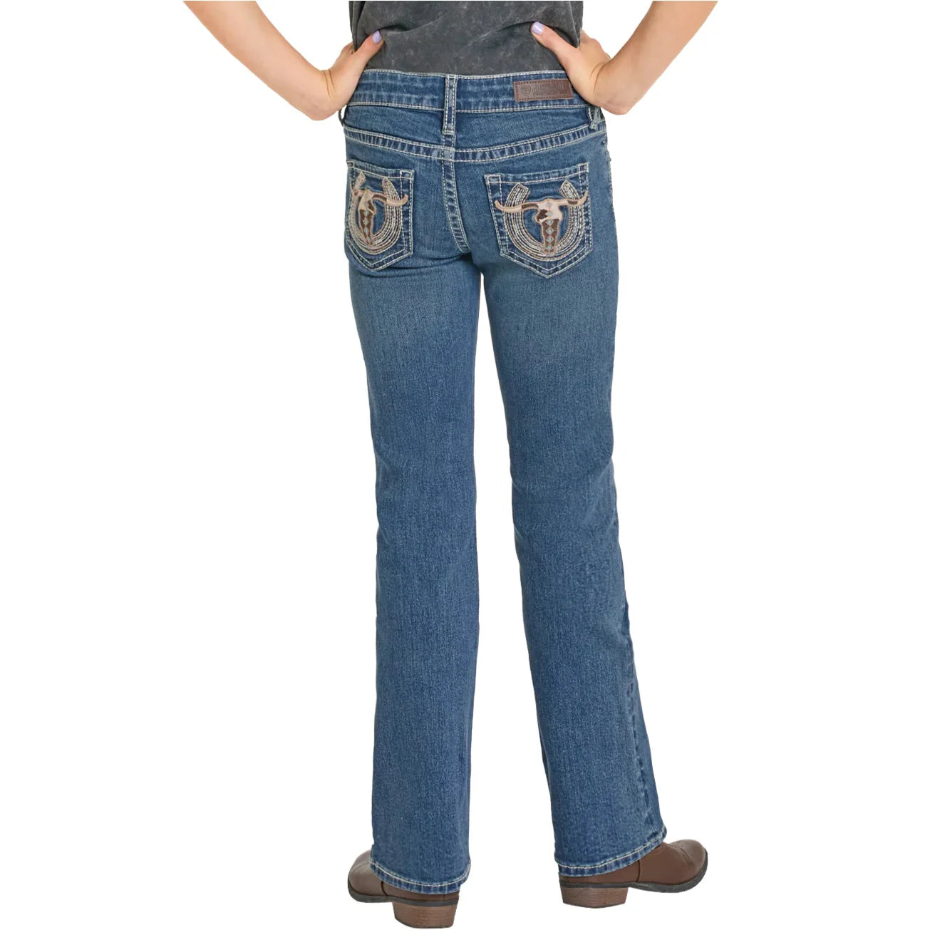 Jean Western Steer & Horseshoe Emb Bootcut – Bleu Moyen