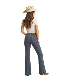 Jeans Trouser Jacquard Taille Haute – Bleu Foncé ligné