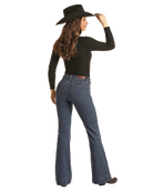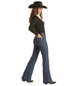 Pantalon trouser au style western chic, réalisé dans un denim jacquard texturé qui apporte profondeur et caractère. Sa taille mi-haute et sa coupe évasée offrent une silhouette élégante et structurée.