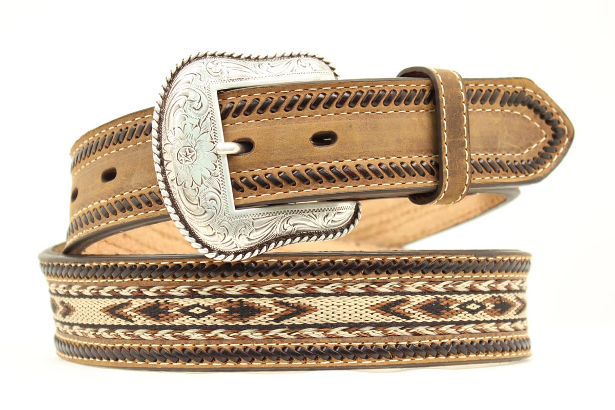 Ceinture Western 1 1/2" – Naturelle avec Bordures en Crin Tressé et Boucle Stetson®