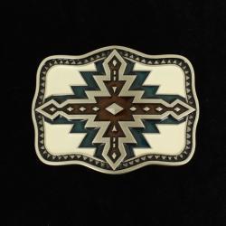Nocona – Boucle de Ceinture Rectangulaire Aztec & Floral - Argent