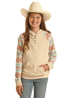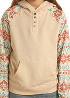 Hoodie Western – Manches Contrastantes Aztèque – Beige