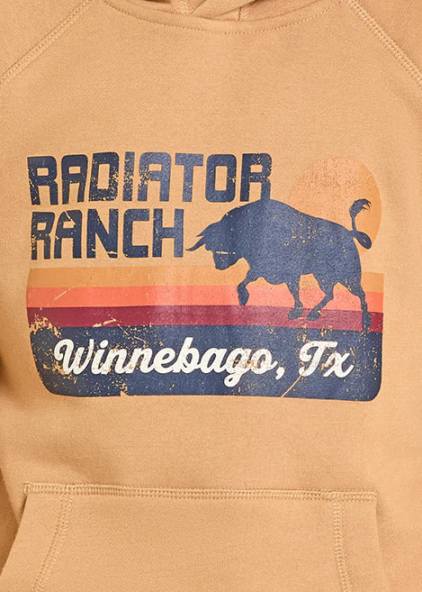 Inspiré de l’univers western moderne et du style authentique de la vie de ranch, ce hoodie "Radiator Ranch" est une pièce incontournable pour les amateurs de confort et d’aventure. Avec son coloris beige naturel et son imprimé vintage représentant un taureau au coucher du soleil accompagné de la mention Radiator Ranch – Winnebago, TX, il incarne parfaitement l’esprit cowboy et ranch texan.