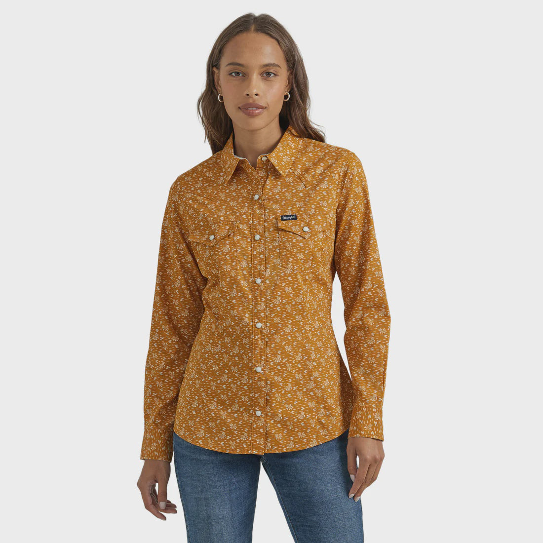 Affirmez votre style western avec cette chemise Wrangler pour femme, ornée d’un imprimé floral éclatant sur fond orange vif. Parfaite pour les journées ensoleillées ou les événements western, elle combine confort et élégance dans un design authentique.