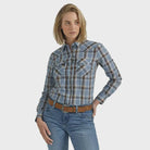 Affichez votre style western avec cette chemise Wrangler pour femme, référence 112352960. Son motif à carreaux bleus et blancs, inspiré du style ranch, est parfait pour une allure décontractée ou un look de cowgirl moderne.
