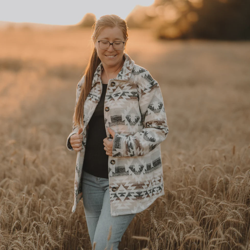 Alliant style, confort et inspiration forestière, la Chemise Woodland est la pièce parfaite pour la mi-saison. Son tissu doux et épais offre chaleur et confort, tandis que son imprimé géométrique aux tons crème, brun et noir évoque la nature et l’harmonie du bois. Polyvalente, elle se porte aussi bien ouverte en surchemise que boutonnée comme haut principal — un essentiel au charme rustique et chic.