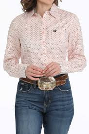 Chemise Western à Manches Longues – Rose Pâle à Pois