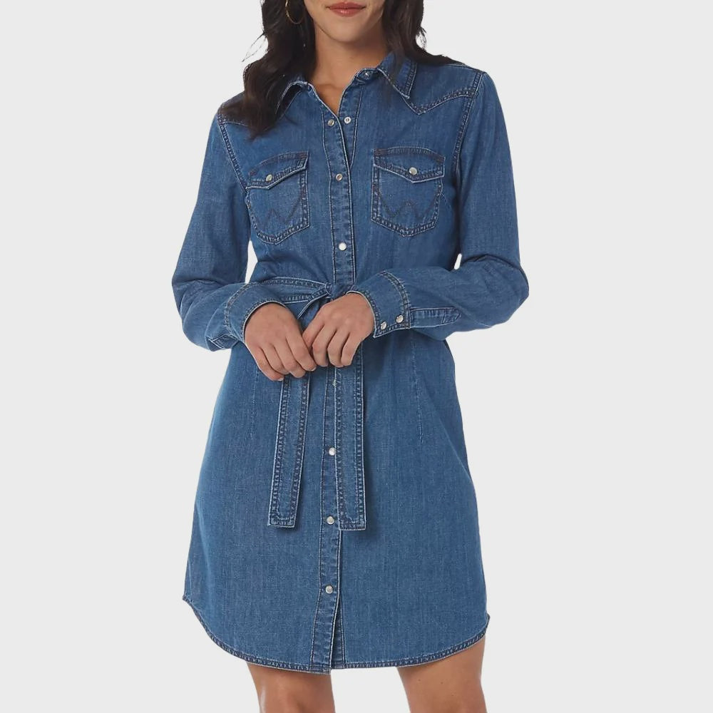 Wrangler® – Robe Western en Denim à Manches Longues – Bleu – Femme – 10LWD708D