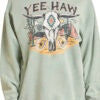 Affichez un style western moderne et décontracté avec le sweatshirt graphique "Yee Haw" signé Rock & Roll Denim. Confortable et tendance, il est confectionné dans une matière douce et chaude, parfaite pour la vie de tous les jours. Sa couleur Jade et son imprimé western affirmé ajoutent une touche audacieuse et authentique à votre look.