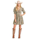 Rock & Roll – Robe Courte à Motif Bohème – Vert/Beige