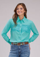 Roper – Chemisier Western Uni à Franges – Turquoise