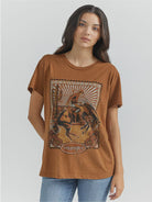 Avec sa coupe boyfriend ample et son imprimé western rétro, ce t-shirt Wrangler Retro® est parfait pour un look décontracté, stylé et assumé. Son tissu doux et respirant, dans le coloris Toffee (brun caramel), apporte une touche chaleureuse et vintage à vos tenues.