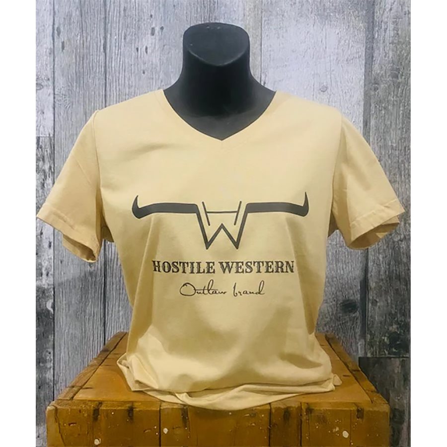 T-Shirt Col en V Western – Logo Hostile – Sandstone