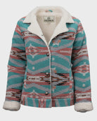 Confort absolu et charme western assuré. La veste Gemma se distingue par son motif audacieux et sa doublure en berber ultra-douce qui procure une chaleur enveloppante. Sa texture laineuse et sa teinte turquoise en font une pièce à la fois élégante et fonctionnelle, idéale pour affronter les journées fraîches avec style.