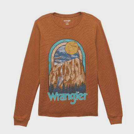Confort et inspiration naturelle s’unissent dans ce t-shirt thermique à manches longues Wrangler Mountain Scene. Présenté dans une chaleureuse teinte Argan Oil, il offre une coupe décontractée parfaite pour les températures plus fraîches. Le motif montagne sérigraphié au dos évoque l’appel du plein air et la liberté des grands espaces. Parfait seul ou en superposition sous une veste western.