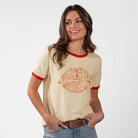 Ce t-shirt Wrangler Retro "Long Live Cowboys Kiss" rend hommage à l’amour du mode de vie western avec une touche audacieuse. Son imprimé central met en vedette un baiser cowboy/cowgirl stylisé, dans une palette crème flatteuse. Conçu pour allier confort et caractère, il est parfait seul ou sous une veste en denim pour un look western décontracté mais affirmé.