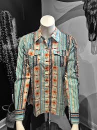 Roper – Chemise Western à Manches Longues – Vintage Aztec Vert/Jaune