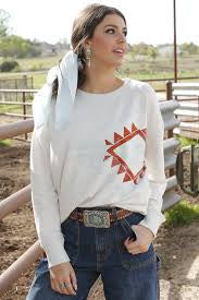 Chandail à Manches Longues avec Broderie Florale – Crème