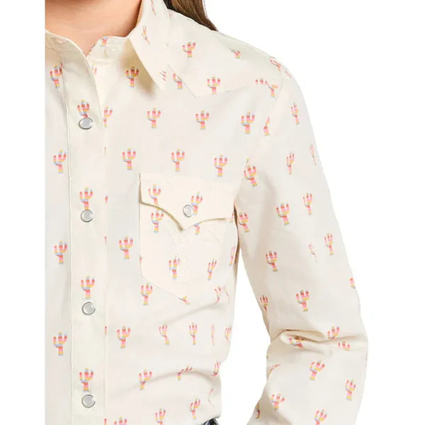 Chemise Western à Manches Longues – Fille – Crème à Motifs Cactus