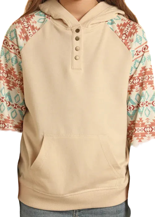 Rock & Roll Denim – Hoodie Junior à Manches Contrastantes – Beige & Aztec