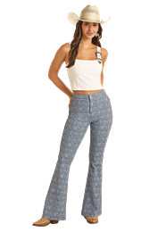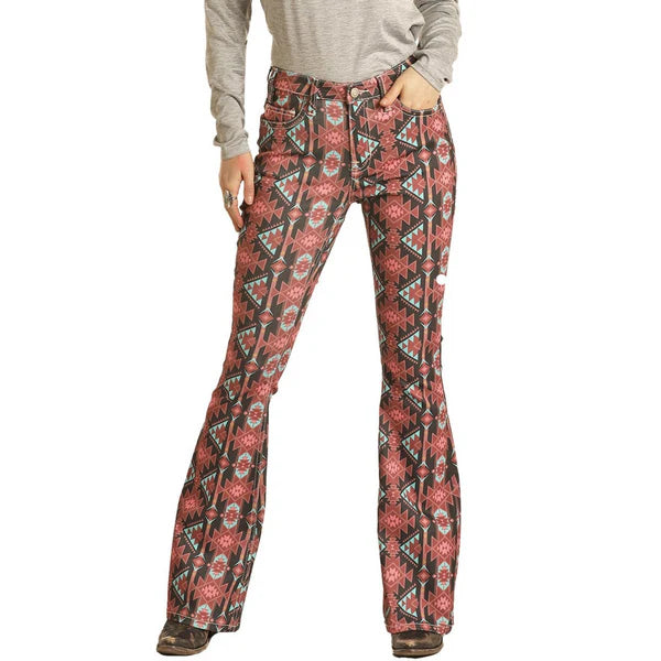 Jeans Baby Flare Imprimé Aztec – Rouge & Turquoise