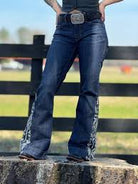 Rock & Roll – Jeans Mid Rise Trouser "Side Insert Embroidered" – Dark Wash