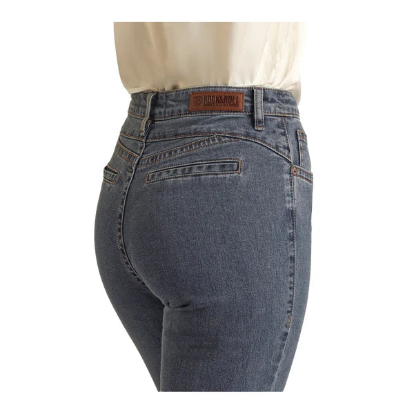 Pantalon trouser au style western chic, avec une coupe évasée élégante et des poches arrière passepoilées pour une finition soignée. Son denim bleu offre une allure raffinée tout en restant confortable au quotidien.