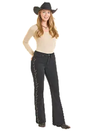 Apportez une touche élégante et western à votre garde-robe avec ce jean Rock & Roll noir, rehaussé d’une broderie florale délicate courant le long de la jambe. À la fois raffiné et pratique, il allie la solidité du denim à un style féminin affirmé, parfait pour les journées en selle comme pour les sorties décontractées. Sa coupe évasée met en valeur la silhouette tout en offrant le confort nécessaire pour porter des bottes de cowboy.