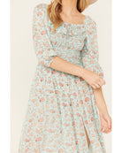Robe Boho Florale – Bleu à Fleurs Roses