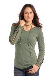 Chandail à Manches Longues – Lacets – Noir et Olive