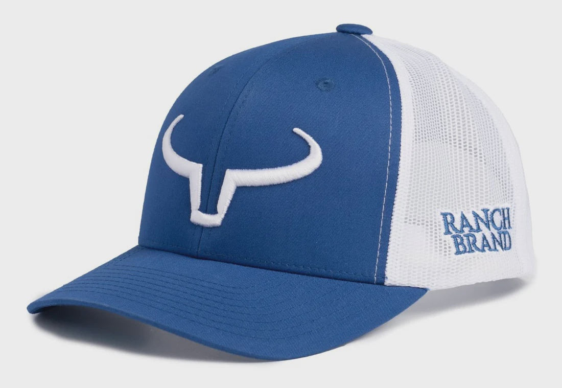 Classique et éclatante, cette casquette Rancher de Ranch Brand marie à merveille l’audace du bleu royal avec la pureté du filet blanc. Le logo brodé en blanc ajoute une touche de contraste élégante, soulignant parfaitement l’identité western de la marque.