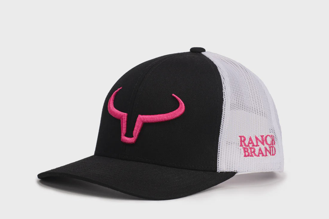 Classique et audacieuse à la fois, cette casquette Rancher de Ranch Brand mise sur un contraste fort entre le noir profond du devant et le mesh blanc éclatant à l’arrière. Le logo brodé en rose apporte une touche inattendue et moderne, parfaite pour celles et ceux qui aiment afficher leur côté western avec style et personnalité.