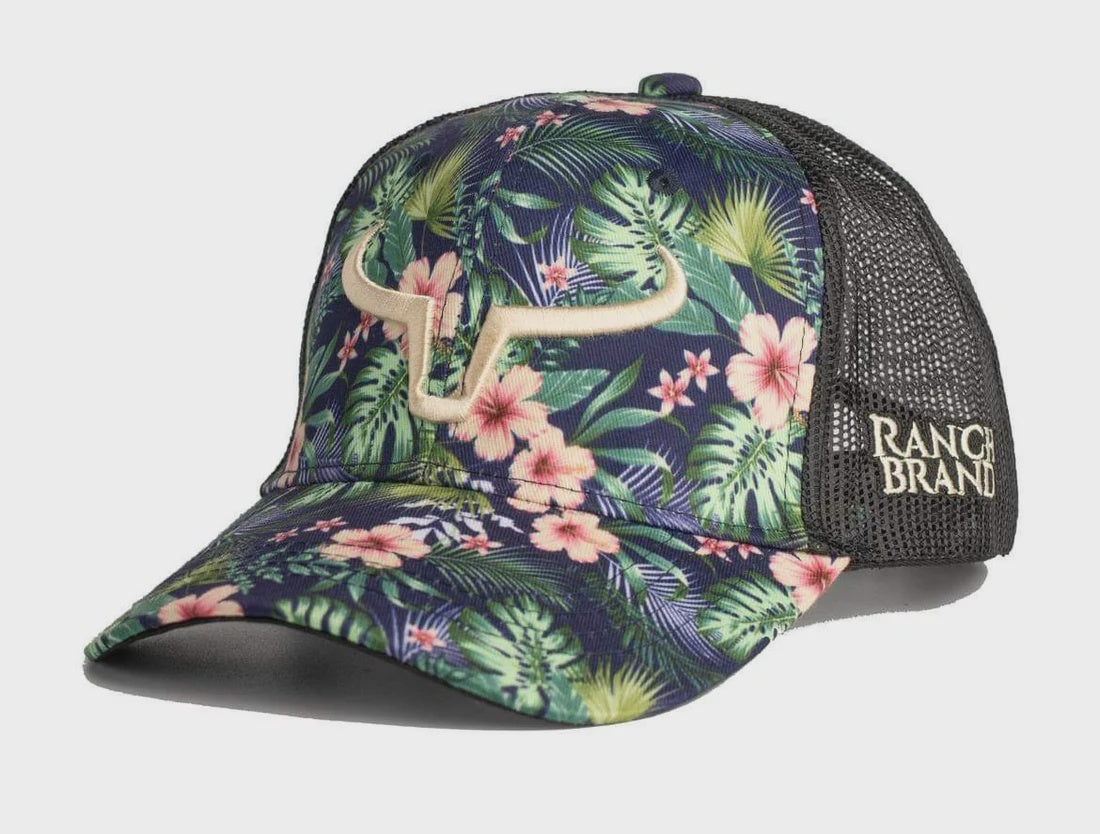 Affichez un style estival audacieux avec cette casquette Ranch Brand au motif tropical. Son imprimé floral vibrant, combiné au logo Longhorn brodé en crème, en fait un accessoire unique qui marie l’énergie western et l’esprit vacances. Parfaite pour ajouter une touche de fraîcheur et de caractère à votre look, que ce soit au ranch, en ville ou lors des festivals.