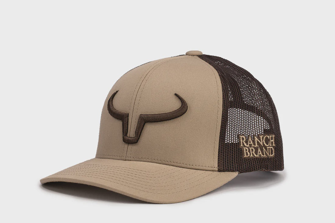 Affirme ton style western avec cette casquette Ranch Brand taupe, rehaussée de son logo longhorn brodé ton sur ton. Son design sobre et raffiné en fait un accessoire polyvalent qui se porte autant en ville qu’au ranch.