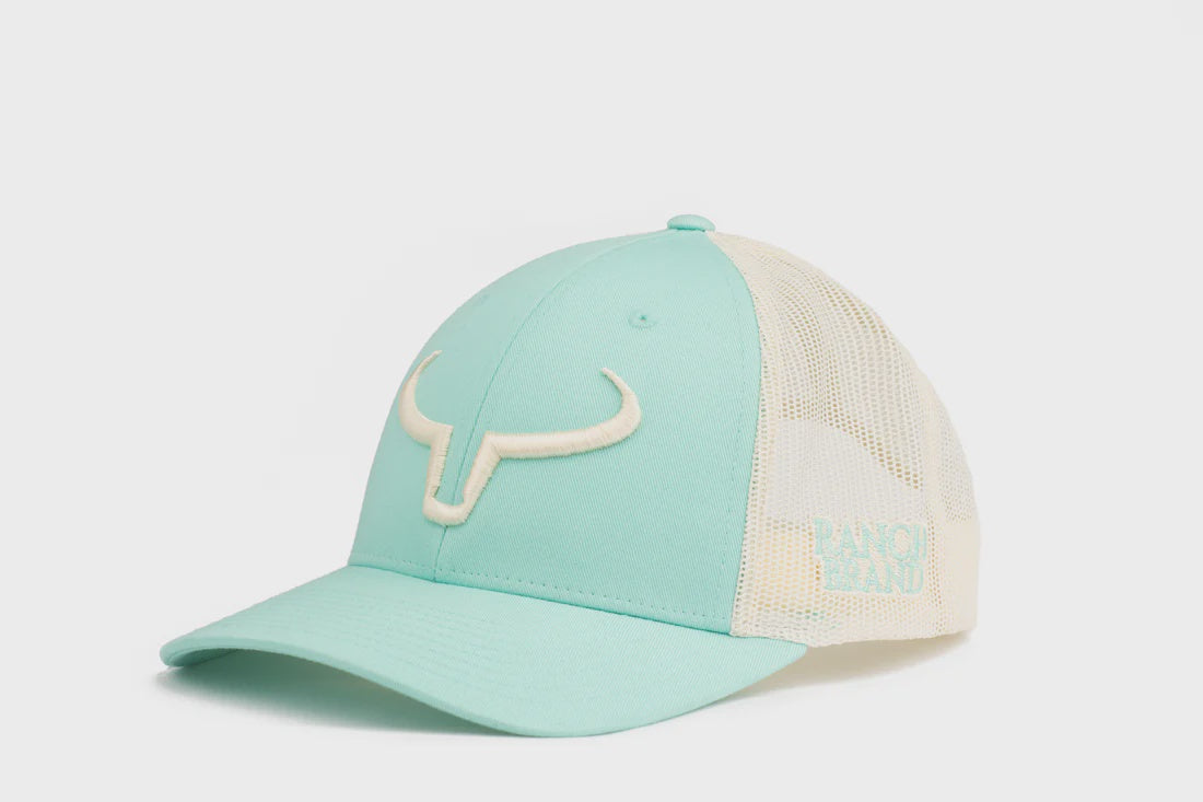 Ranch Brand – Casquette Rancher | Turquoise & Mesh Crème | Logo Crème