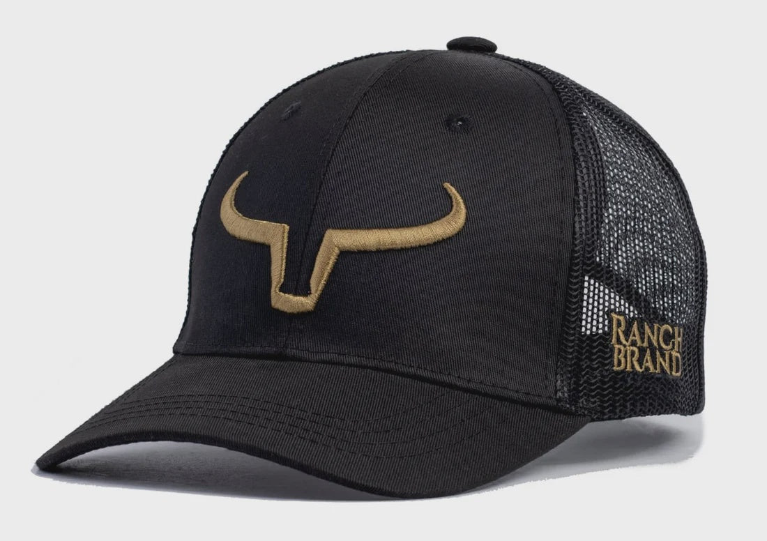 • Type de logo : Longhorn brodé couleur or sur l’avant, broderie Ranch Brand sur le côté
