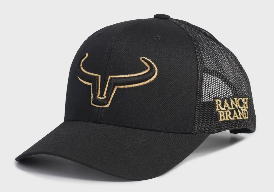 - Type de logo : Longhorn brodé (gris avec contour rouge) à l’avant, inscription Ranch Brand brodée sur le côté