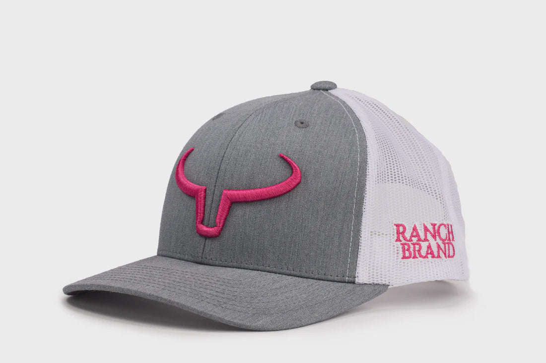 Casquette Rancher – Gris Pâle & Mesh Blanc – Logo Rose