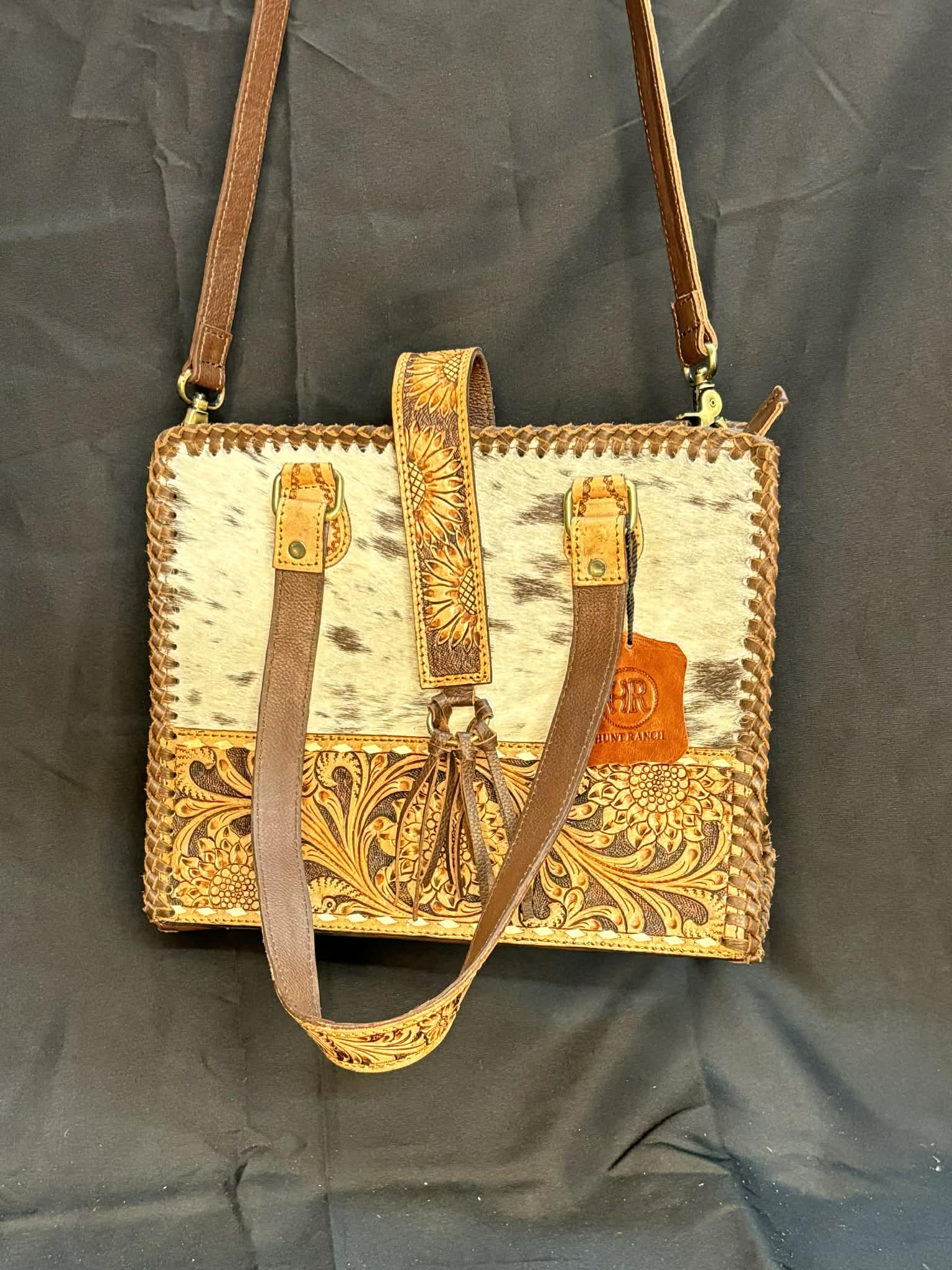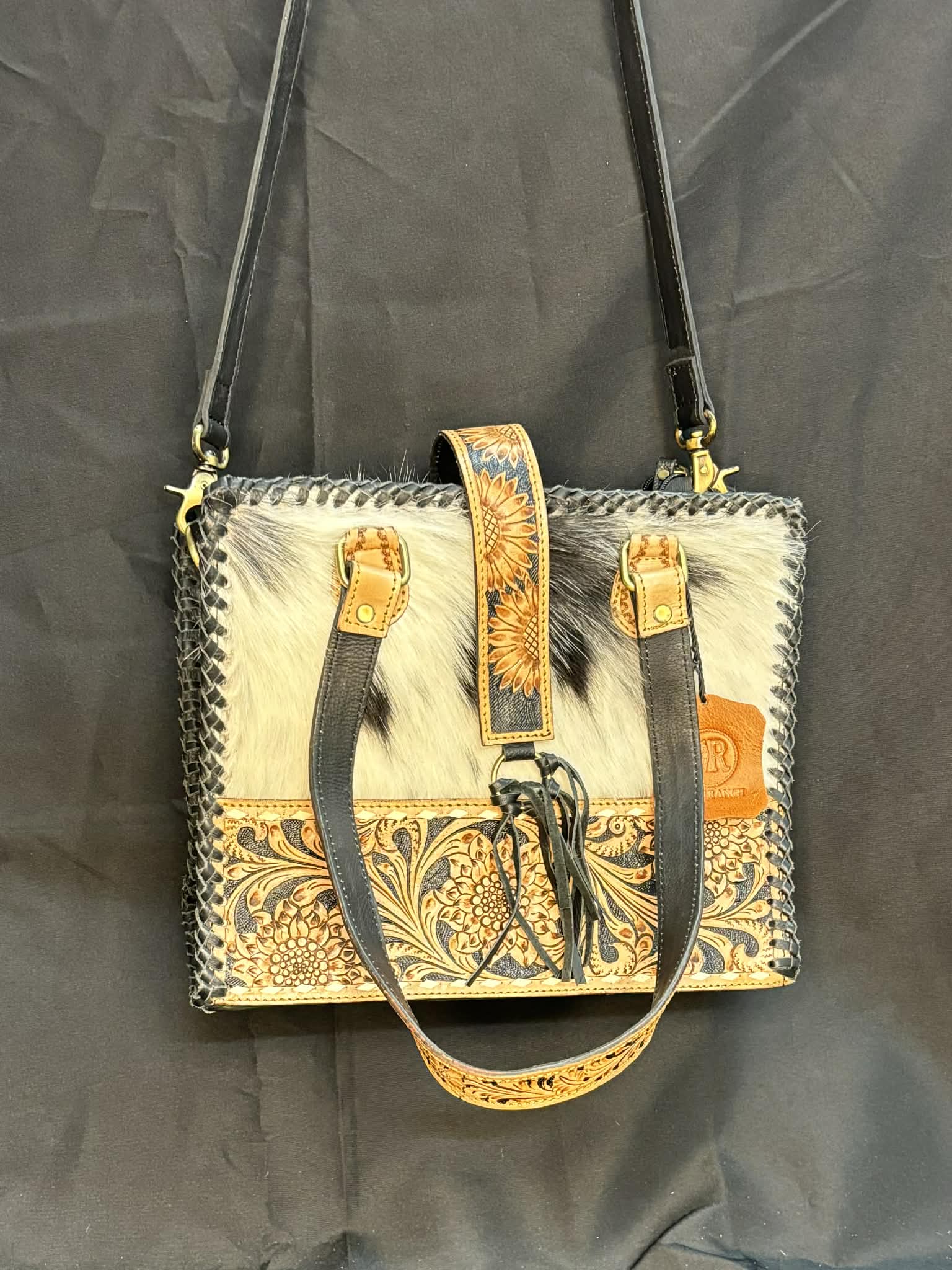 Sacoche Western – Cuir tressé & panneau poil de vache