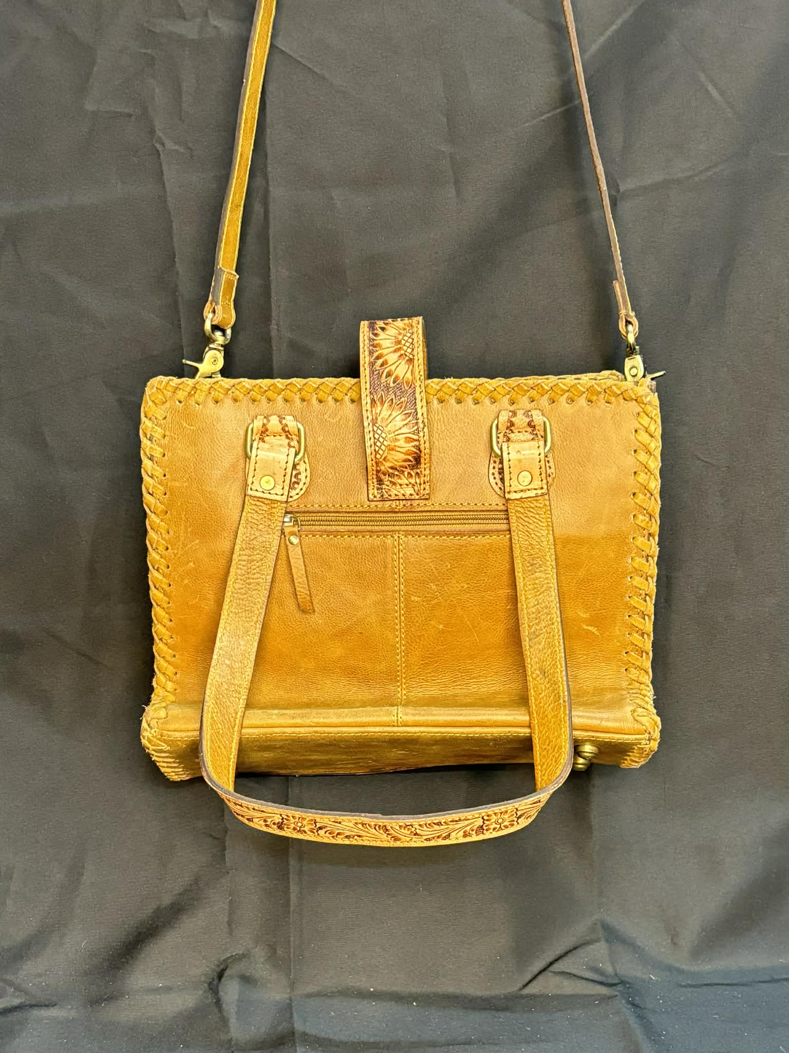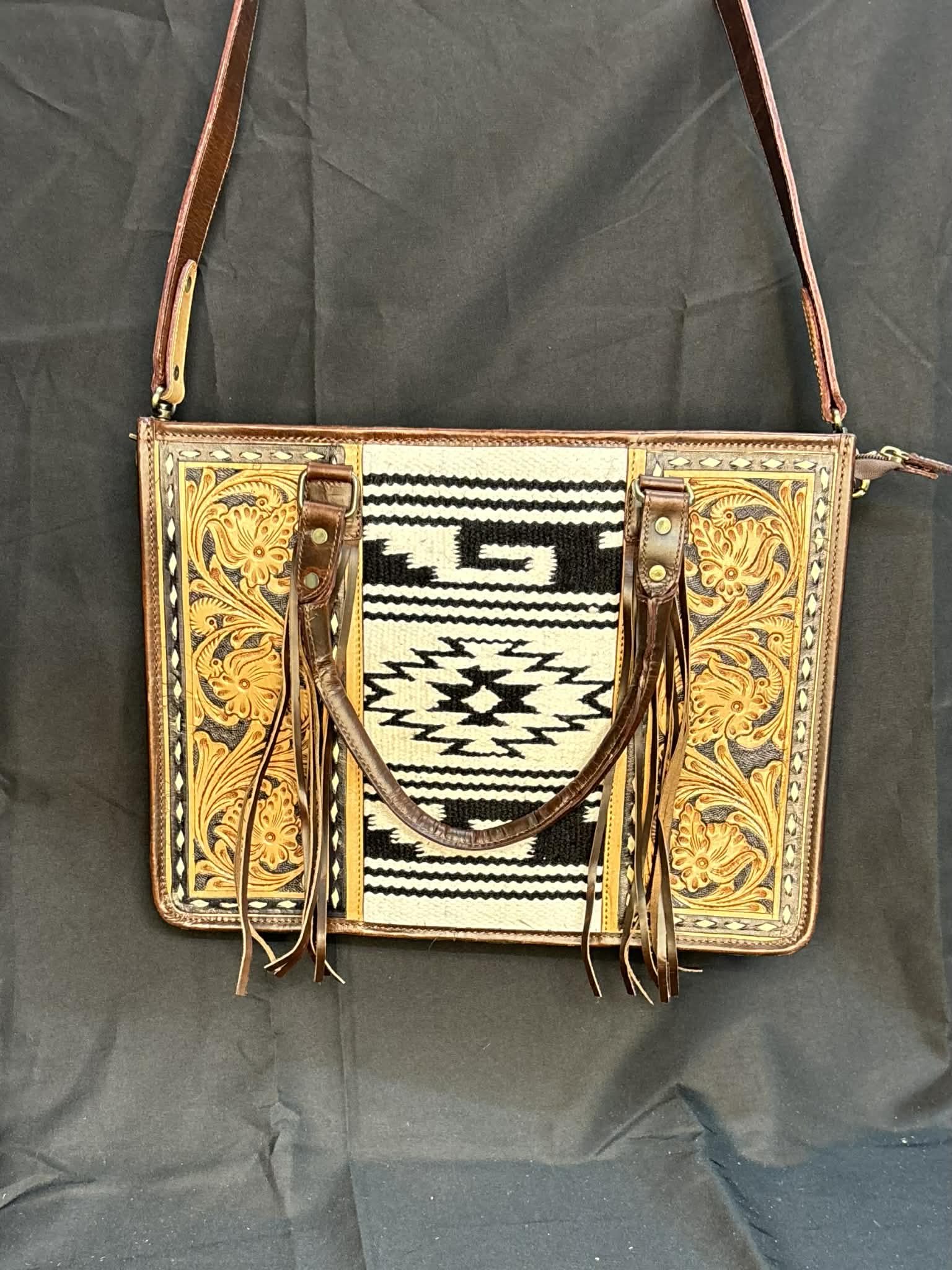 Sacoche Western – Cuir travaillé & panneau tissé aztèque