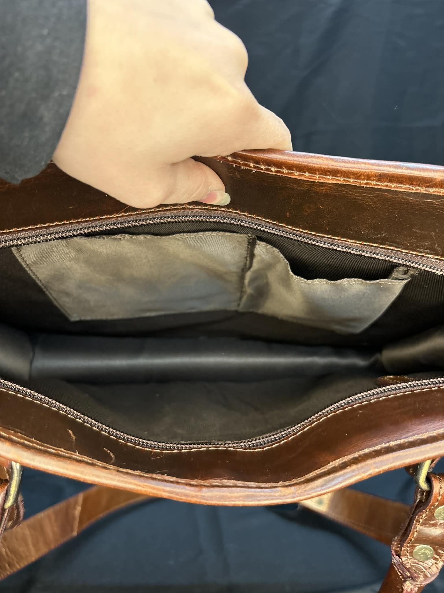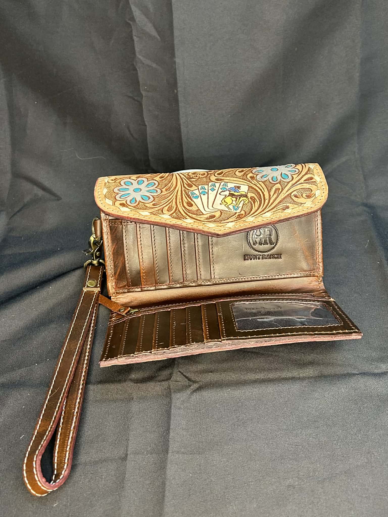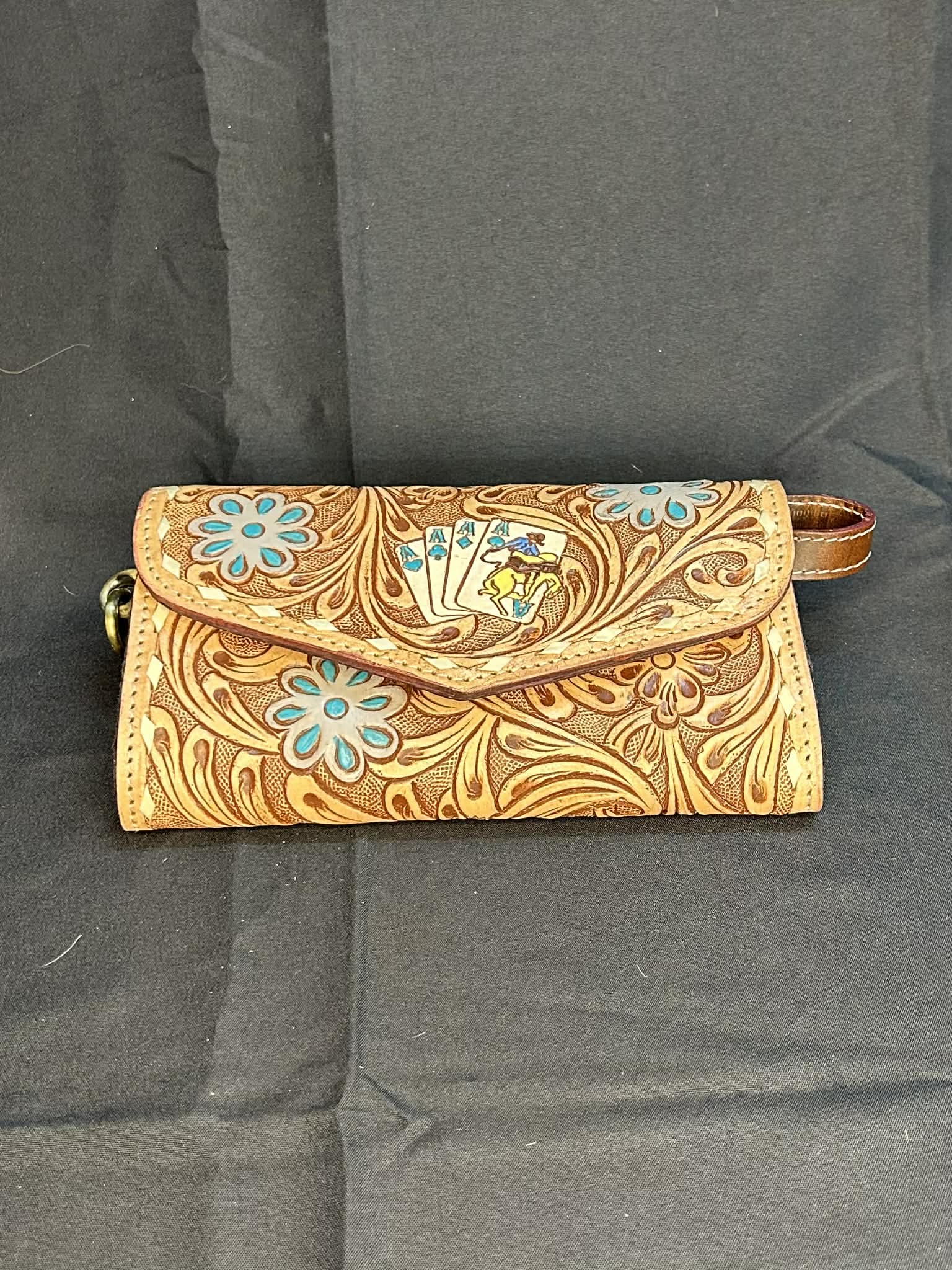 Portefeuille Western – Tri fold cuir travaillé avec accents bleus