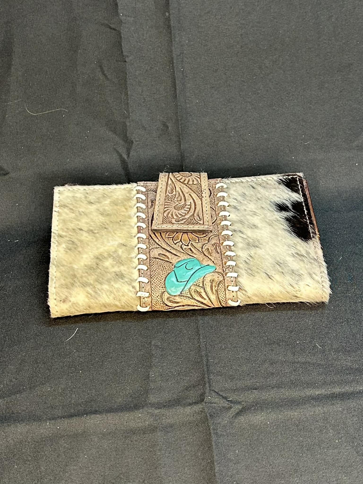 Portefeuille Western – Trifold cuir & poil de vache