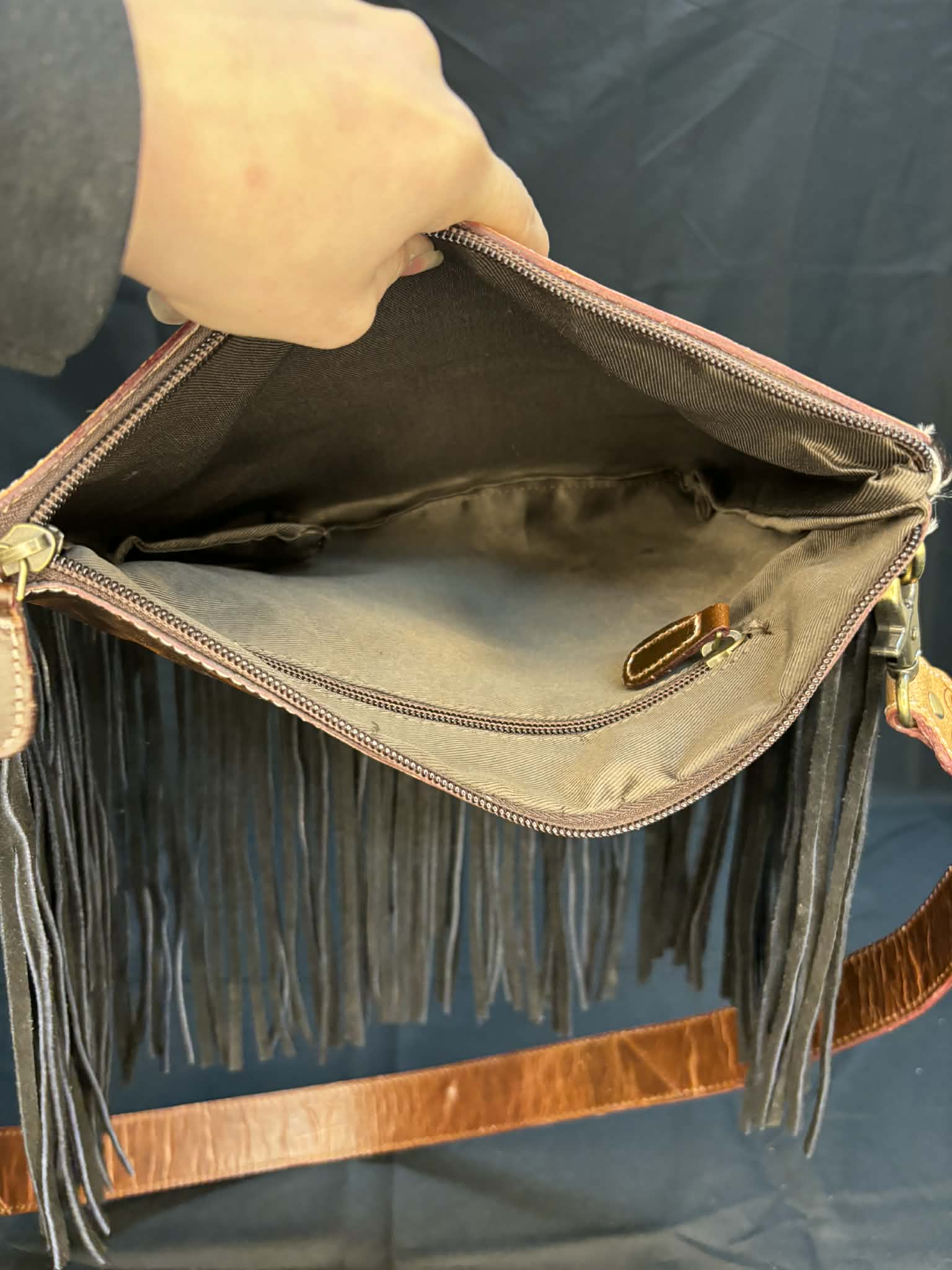 Sacoche Western – Cuir & poil de vache avec franges longues