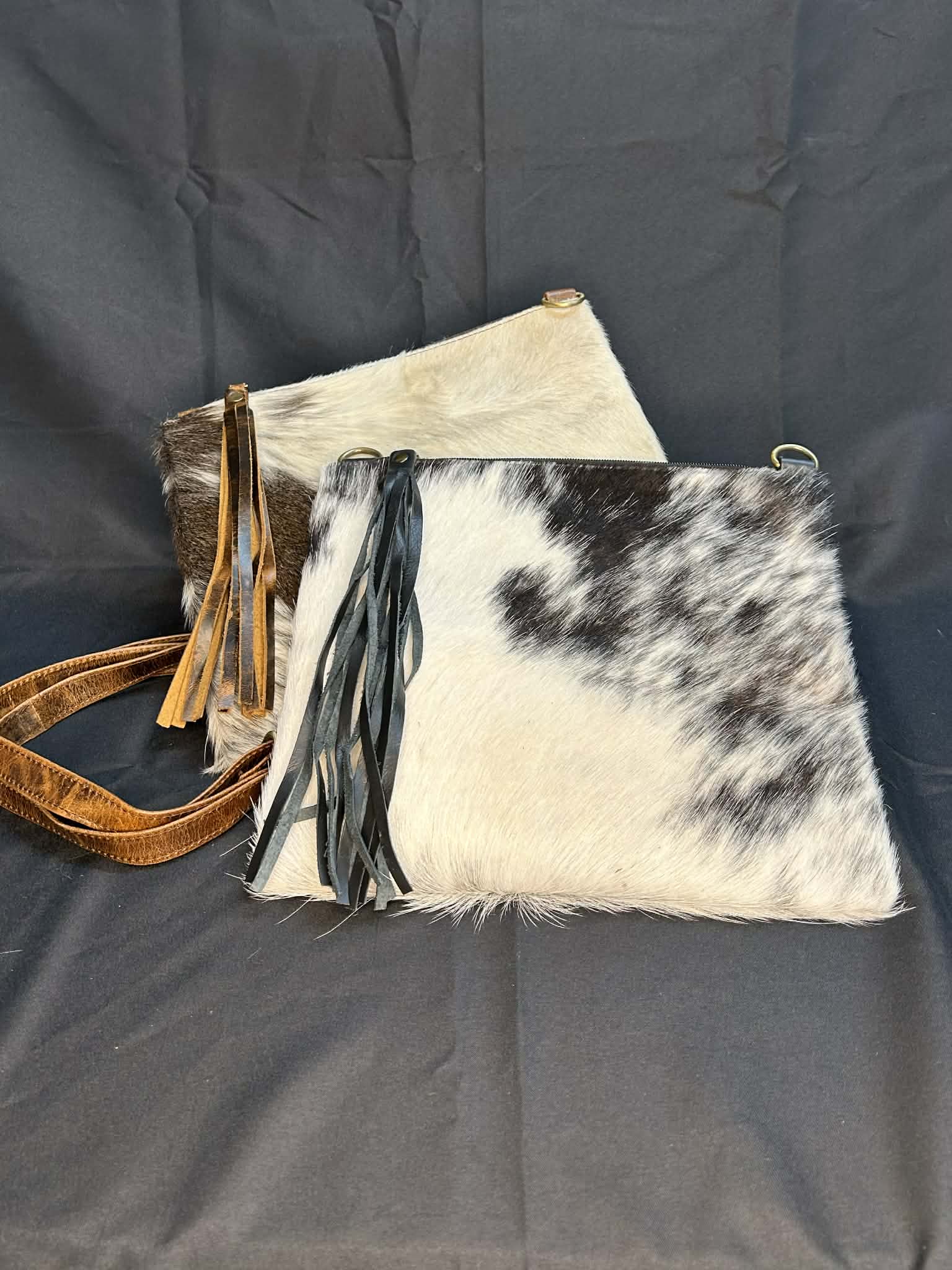 Sacoche crossbody Western – Cuir & poil de vache, ouverture zippée