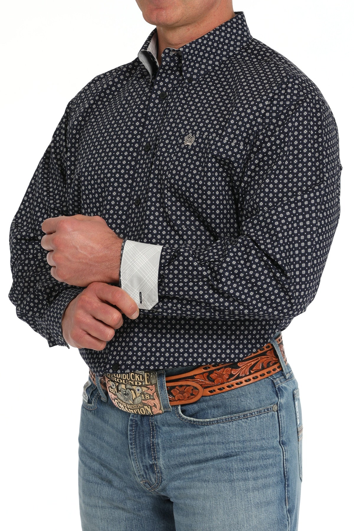 Chemise Western Imprimée à Manches Longues – Marine