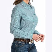 Chemise Western – Rayures Turquoises