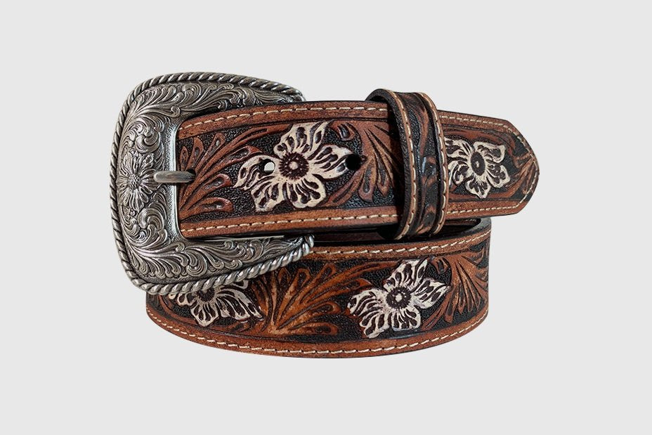 Portefeuille Western à Motif Floral et Plume – Cuir Brun