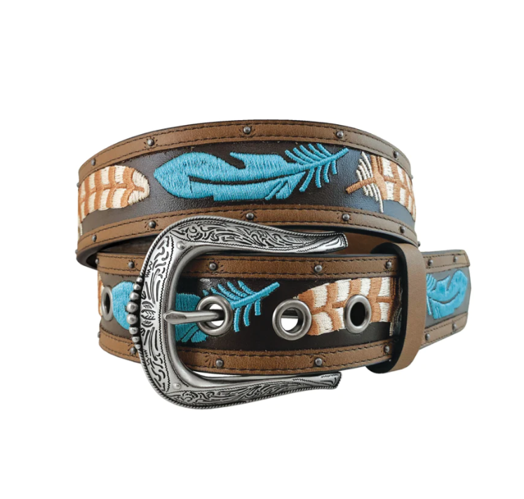Ceinture Western Turquoise / Brun – 30 mm – Fille
